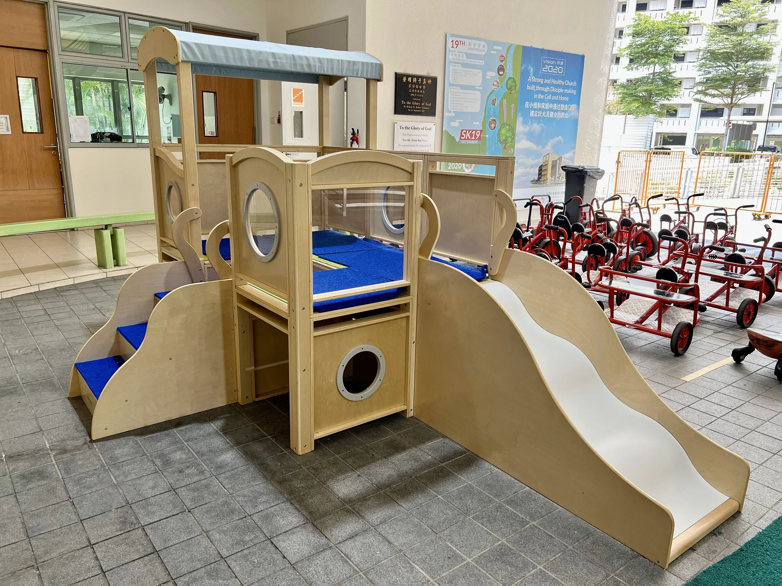 Nestled in the residential area of Sengkang West and located within the vicinity of Sengkang Methodist Church, Sengkang Methodist Preschool offers a spacious, safe and conducive environment with both indoor and large outdoor spaces that are purposefully designed and equipped to support children’s holistic development and play-and-inquiry-based learning.